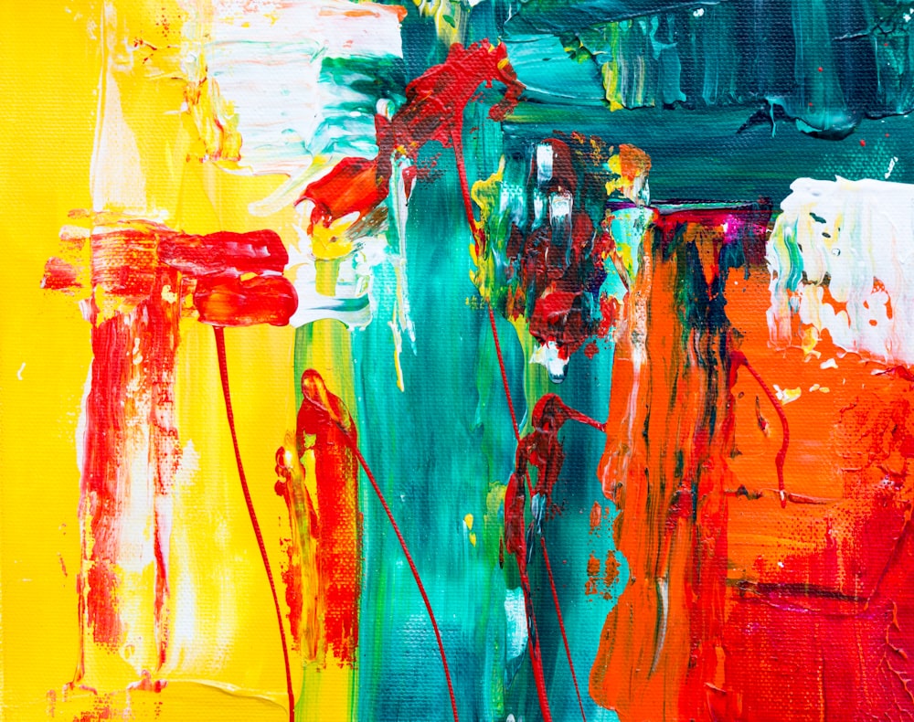 Orange Red And Blue Abstract Painting Photo Free Modern Art