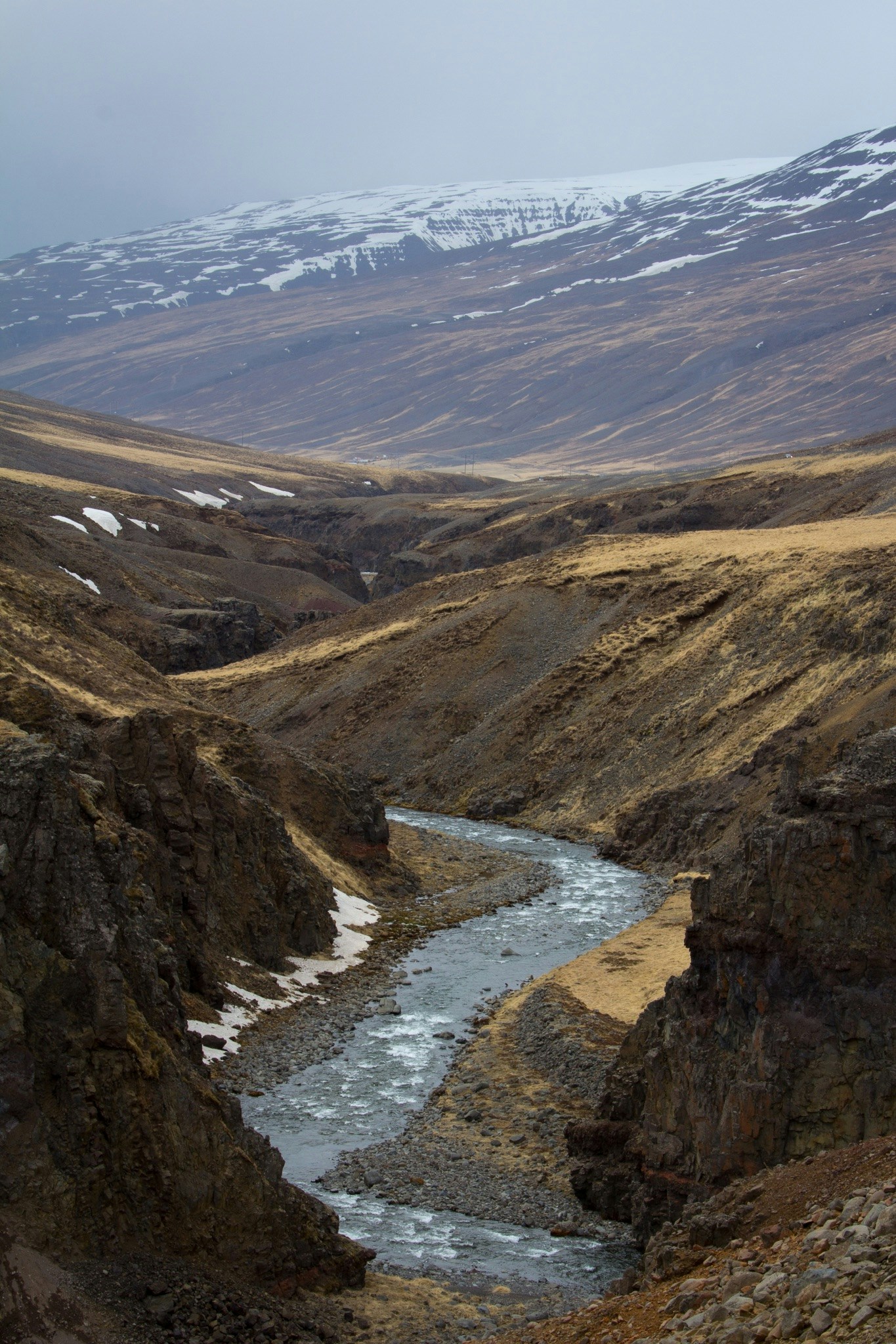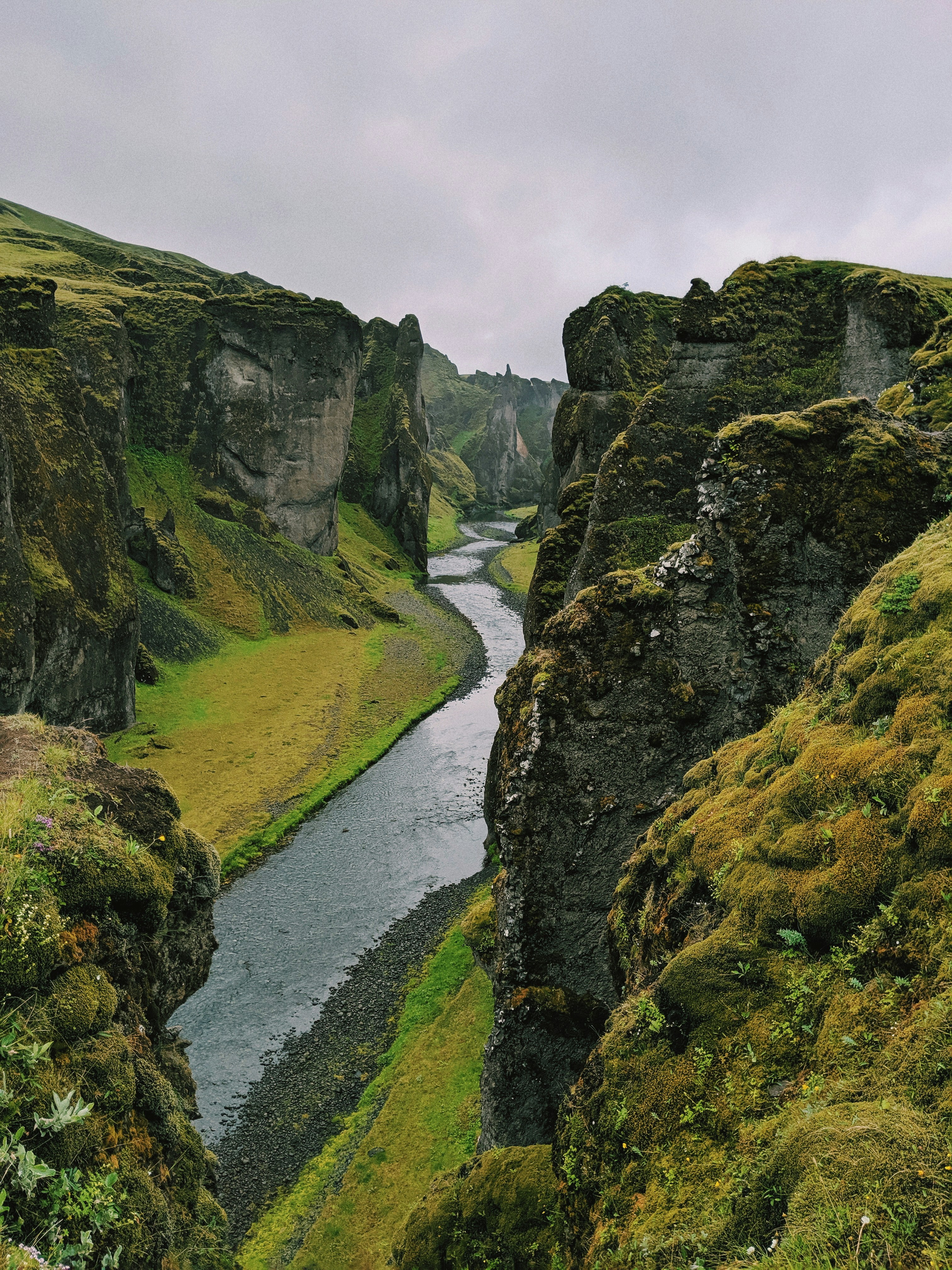 River Flowing Between Two Land Forms Photo Free Iceland Image On